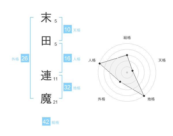 末田 連魔さんの総格は42画の3点!