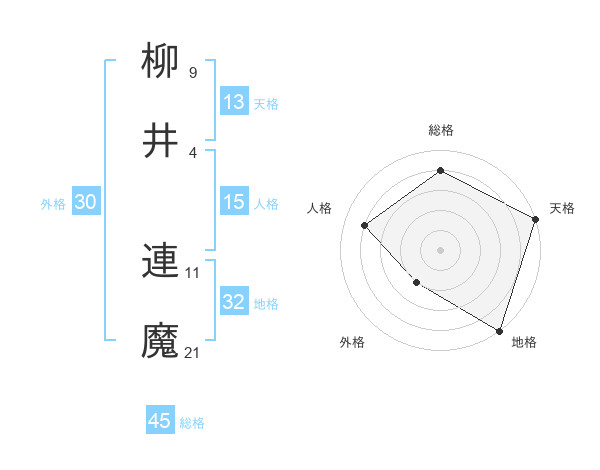 柳井 連魔さんを姓名の画数から五運を鑑定