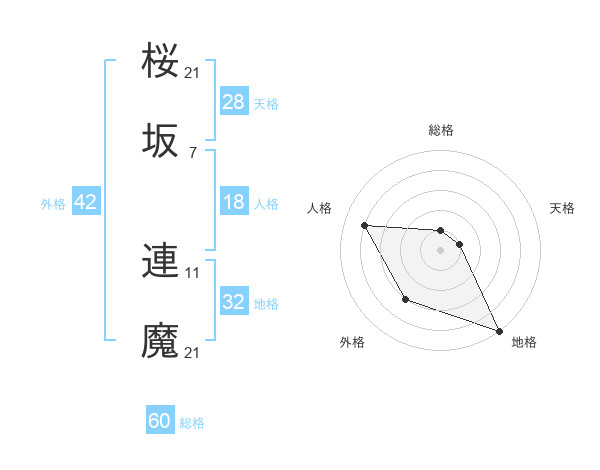 桜坂 連魔さんを姓名の画数から五運を鑑定