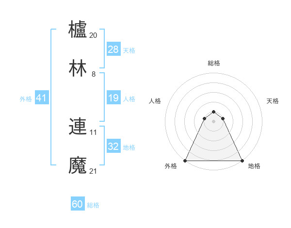 櫨林 連魔さんを姓名の画数から五運を鑑定