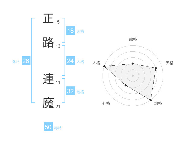 正路 連魔さんの総格は50画の2点!