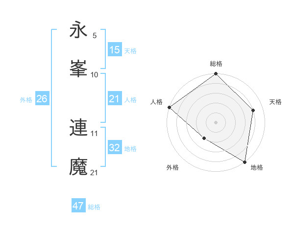 永峯 連魔さんの総格は47画の5点!