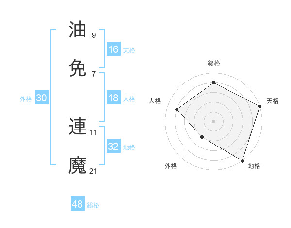 油免 連魔さんの総格は48画の4点!