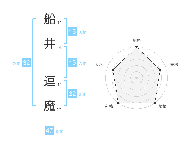 船井 連魔さんの総格は47画の5点!