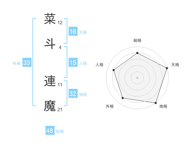 菜斗 連魔さんを姓名の画数から五運を鑑定