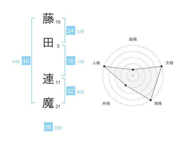 藤田 連魔さんを姓名の画数から五運を鑑定