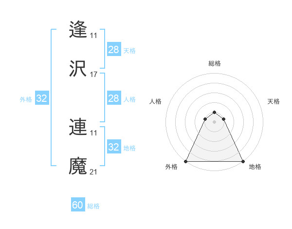 逢沢 連魔さんの外格は32画の5点!