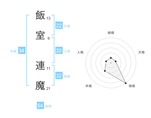 飯室 連魔さんの総格は54画の1点!