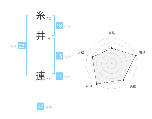 糸井 連さんの天格は16画の5点!