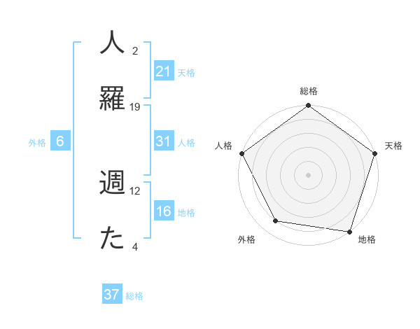 人羅 週たさんの総格は37画の5点!