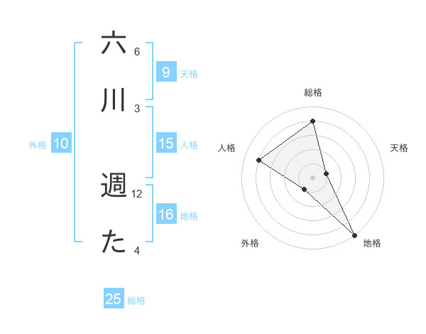 六川 週たさんの地格は16画の5点!