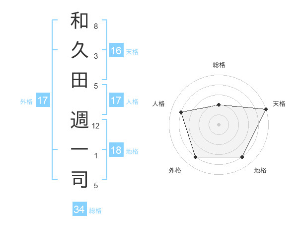 和久田 週一司さんを姓名の画数から五運を鑑定