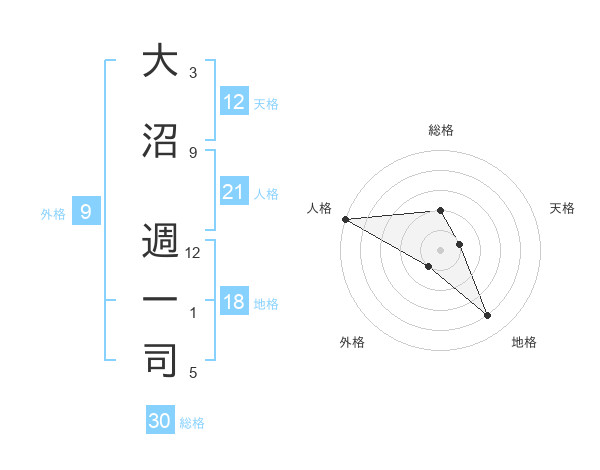大沼 週一司さんを姓名の画数から五運を鑑定