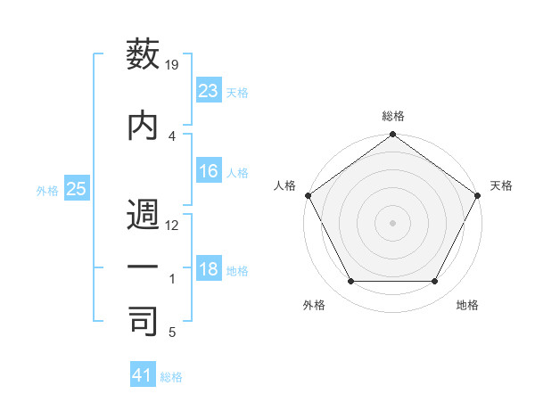 薮内 週一司さんの天格は23画の5点!
