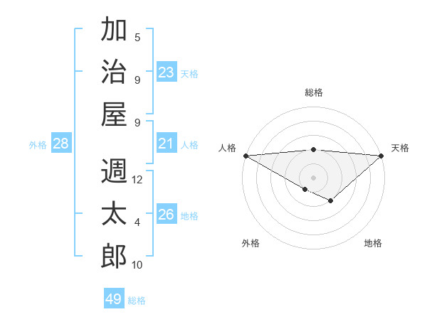 加治屋 週太郎さんを姓名の画数から五運を鑑定