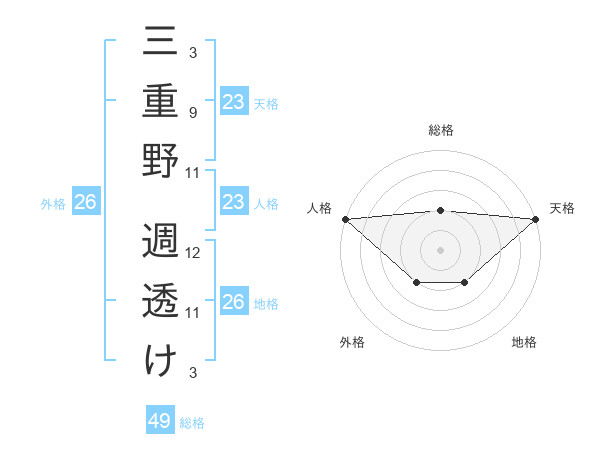 三重野 週透けさんの天格は23画の5点!
