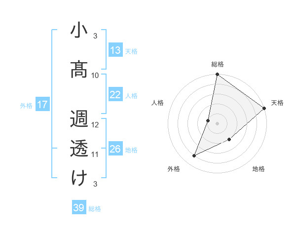 小髙 週透けさんを姓名の画数から五運を鑑定
