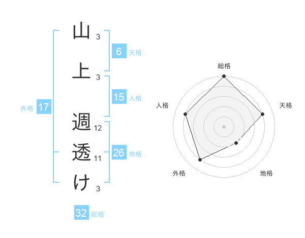 山上 週透けさんの総格は32画の5点!