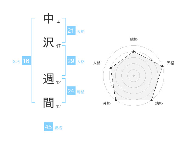 中沢 週間さんの総格は45画の4点!