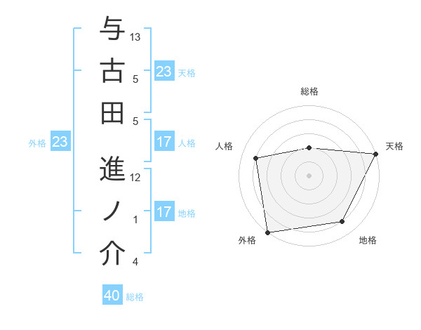 与古田 進ノ介さんを姓名の画数から五運を鑑定