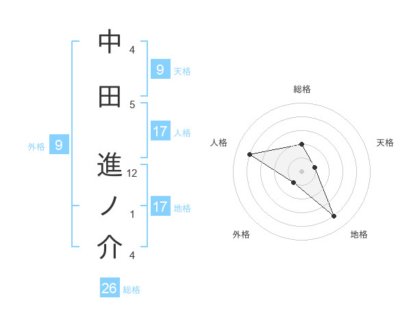 中田 進ノ介さんを姓名の画数から五運を鑑定