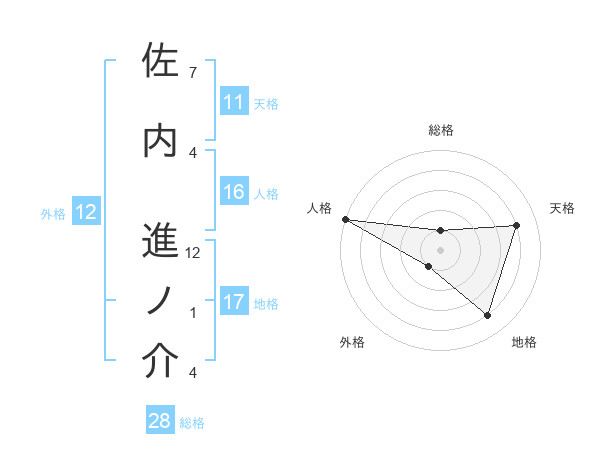 佐内 進ノ介さんを姓名の画数から五運を鑑定