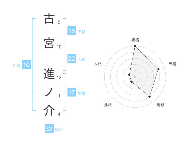 古宮 進ノ介さんの総格は32画の5点!