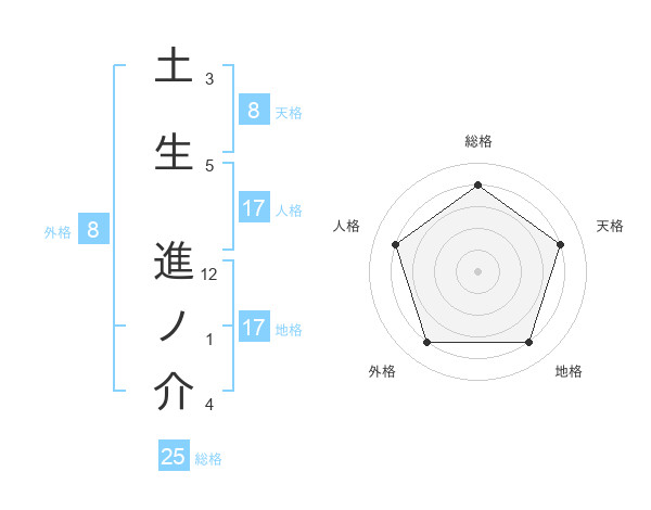 土生 進ノ介さんを姓名の画数から五運を鑑定