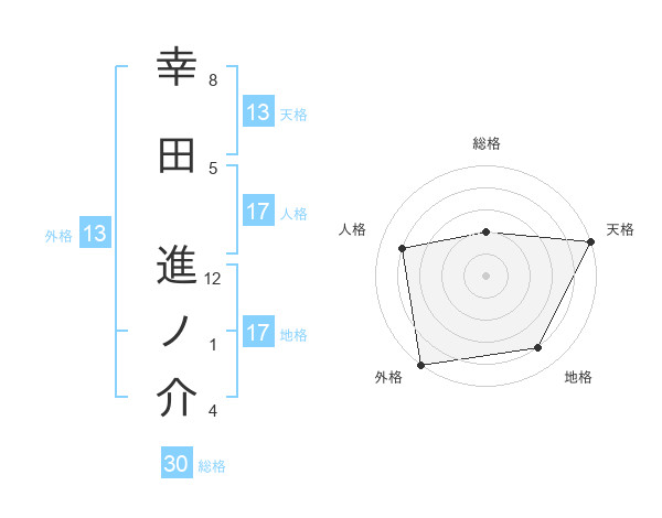 幸田 進ノ介さんを姓名の画数から五運を鑑定