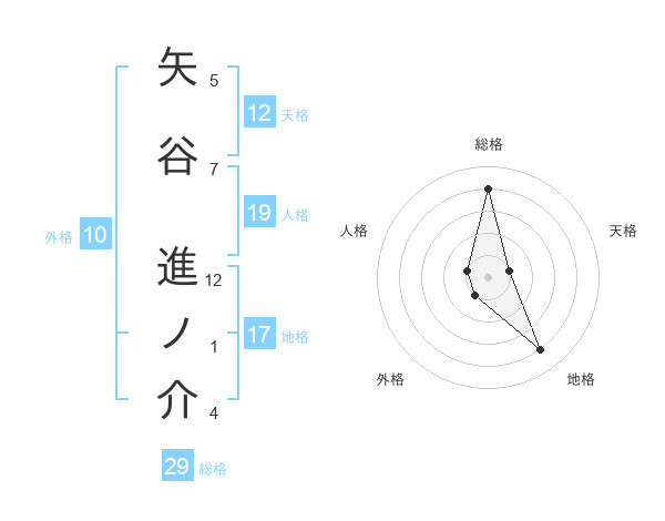 矢谷 進ノ介さんを姓名の画数から五運を鑑定