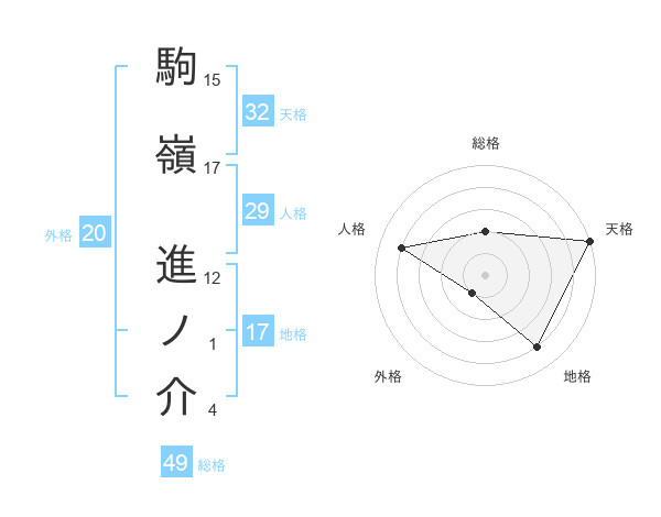 駒嶺 進ノ介さんを姓名の画数から五運を鑑定