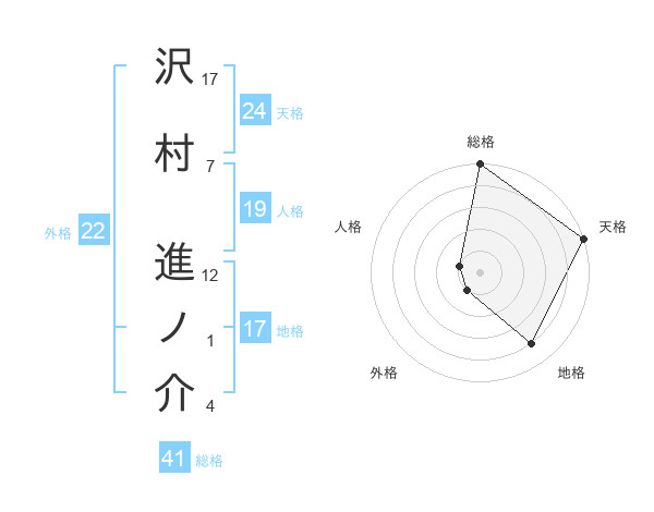 沢村 進ノ介さんを姓名の画数から五運を鑑定