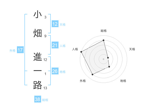 小畑 進一路さんを姓名の画数から五運を鑑定