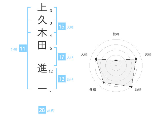上久木田 進一さんを姓名の画数から五運を鑑定