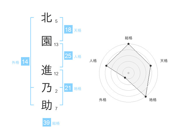 北園 進乃助さんを姓名の画数から五運を鑑定