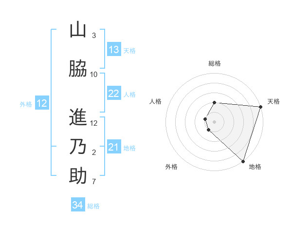 山脇 進乃助さんを姓名の画数から五運を鑑定