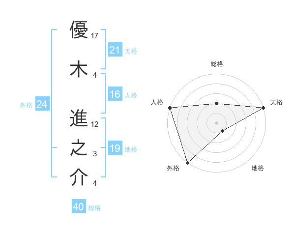 優木 進之介さんの天格は21画の5点!