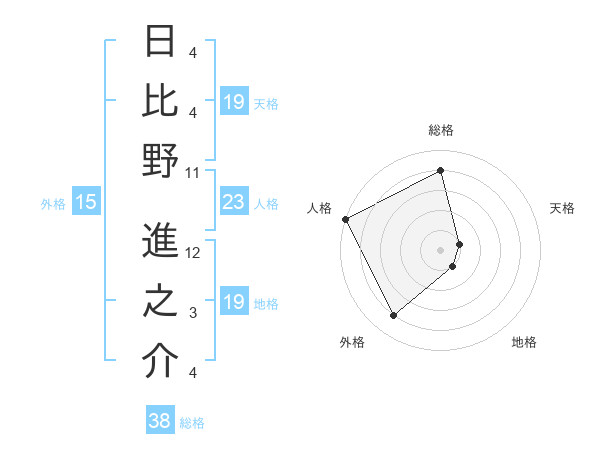 日比野 進之介さんを姓名の画数から五運を鑑定