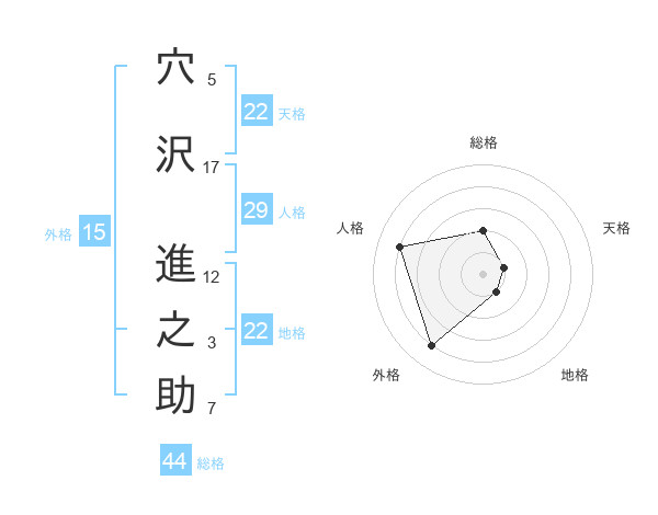穴沢 進之助さんの総格は44画の2点!