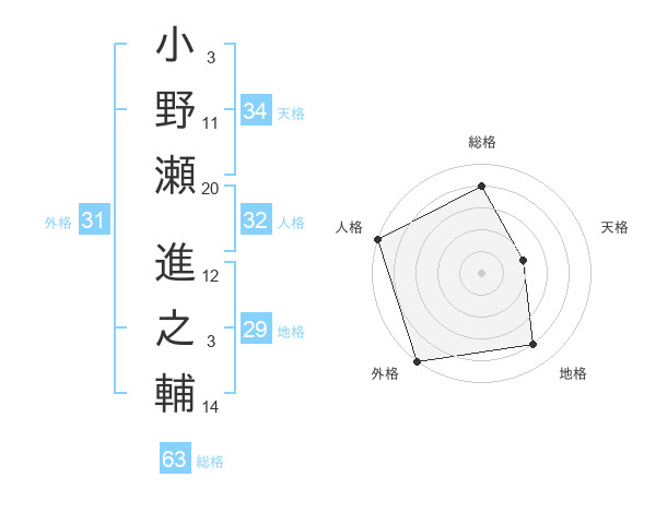 小野瀬 進之輔さんを姓名の画数から五運を鑑定