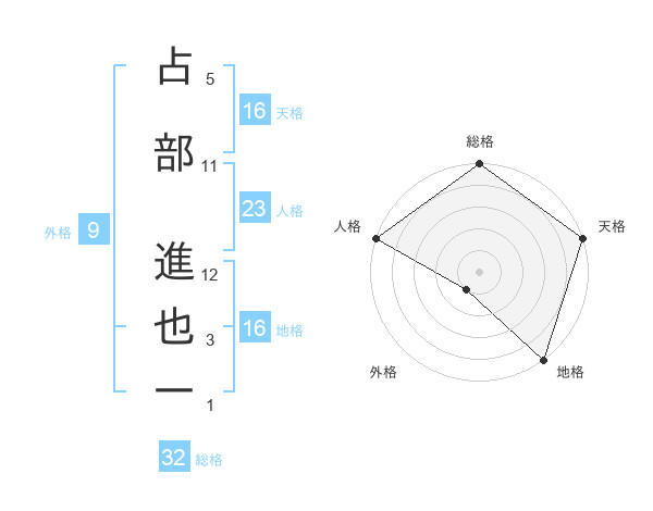 占部 進也一さんの天格は16画の5点!