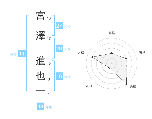 宮澤 進也一さんを姓名の画数から五運を鑑定