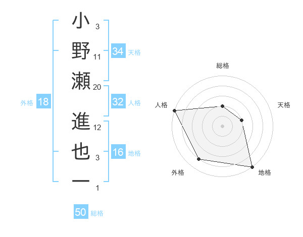 小野瀬 進也一さんを姓名の画数から五運を鑑定