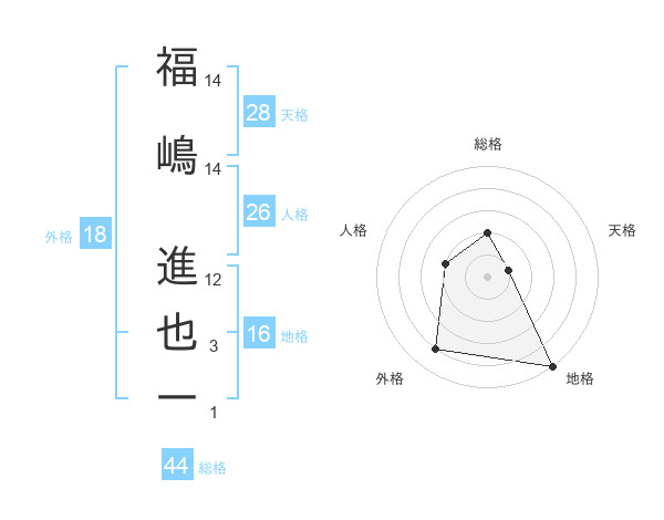 福嶋 進也一さんを姓名の画数から五運を鑑定