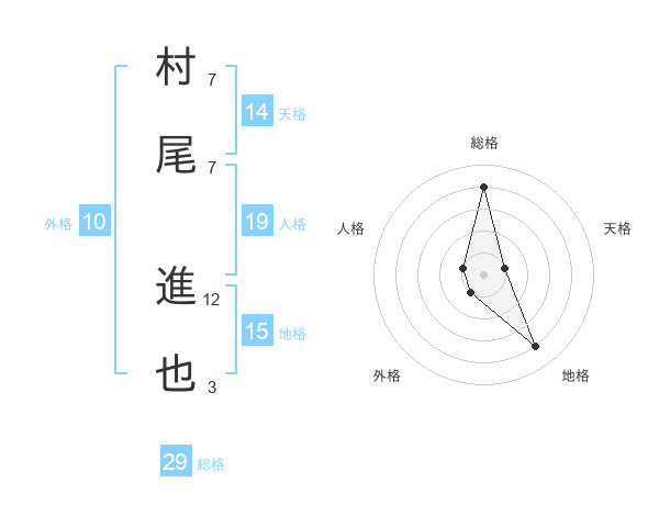 村尾 進也さんの総格は29画の4点!