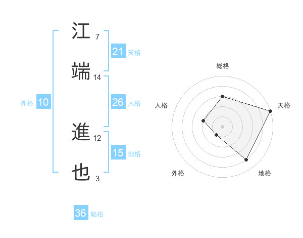 江端 進也さんの天格は21画の5点!