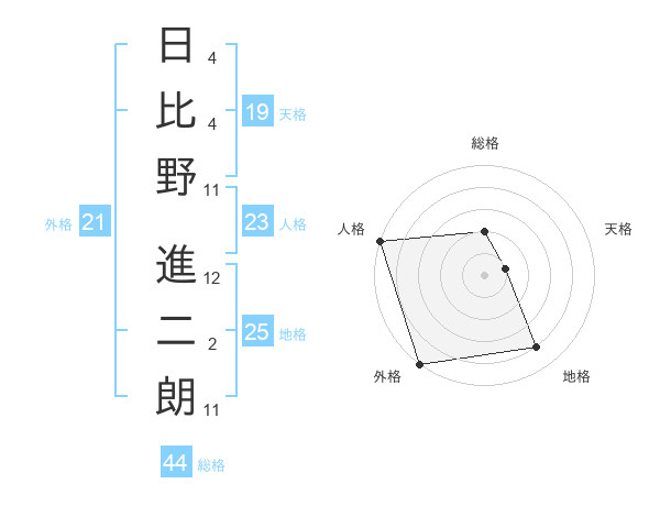 日比野 進二朗さんを姓名の画数から五運を鑑定