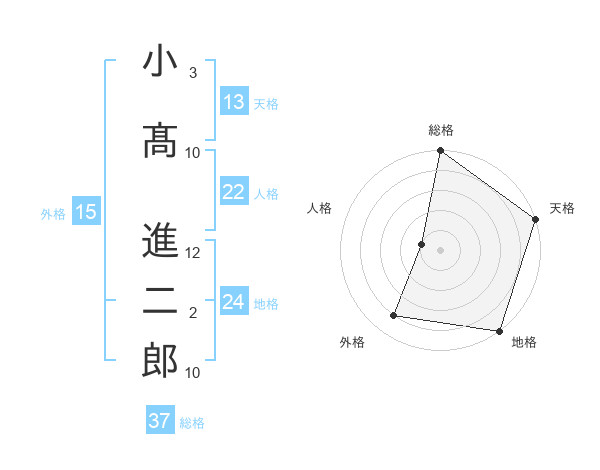 小髙 進二郎さんの総格は37画の5点!