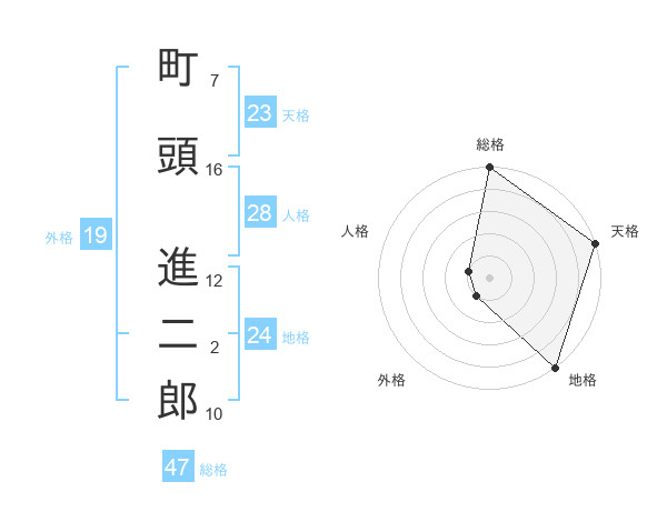 町頭 進二郎さんを姓名の画数から五運を鑑定