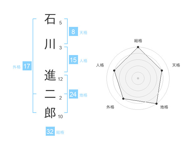 石川 進二郎さんを姓名の画数から五運を鑑定